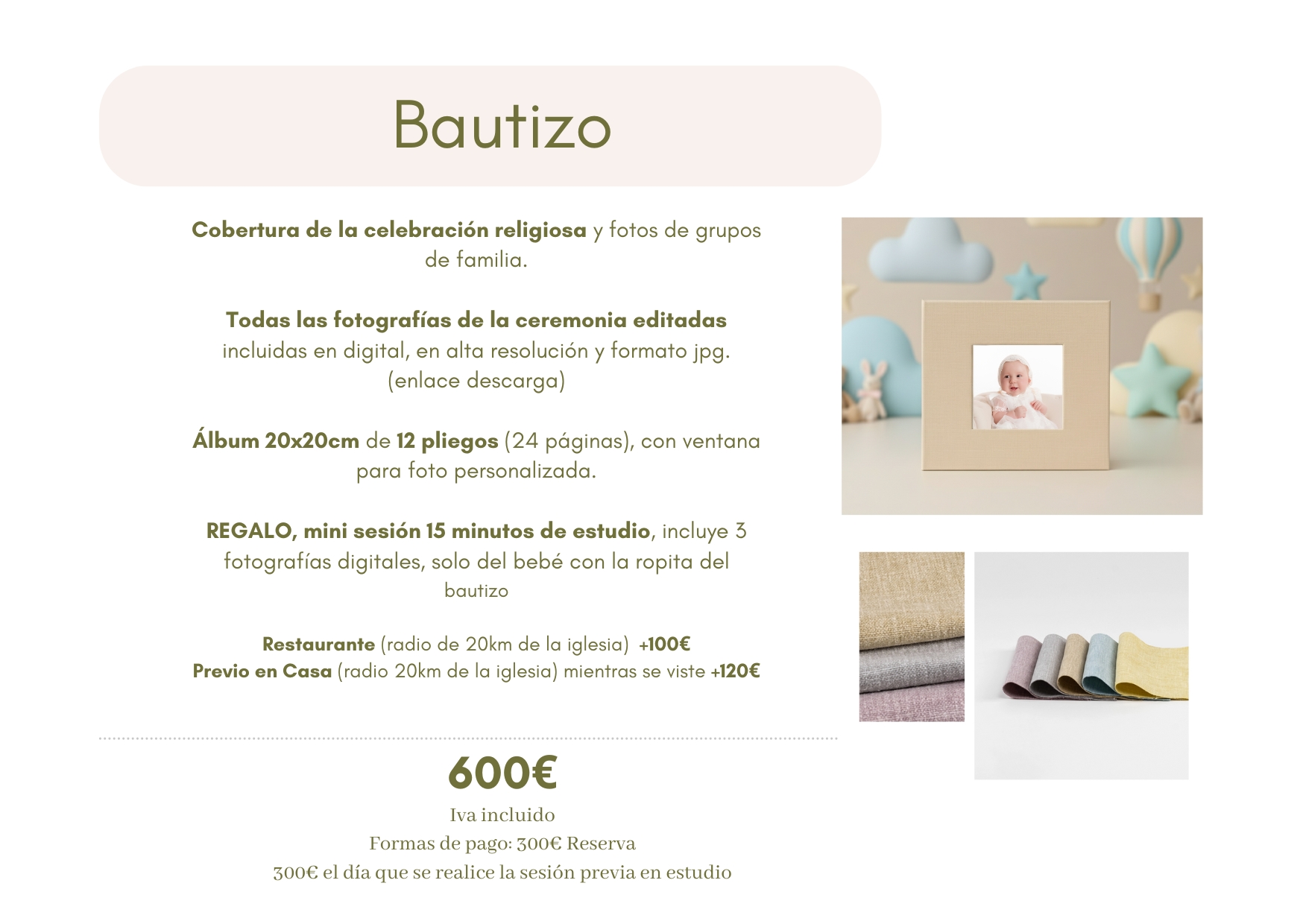 El bautizo es un momento único en la vida de tu pequeño, rodeado de amor, familia y emoción que merecen ser inmortalizadas. Nuestra sesión de bautizo está pensada para capturar cada sonrisa, cada gesto y cada instante de este día tan especial, con un estilo natural, elegante y atemporal.