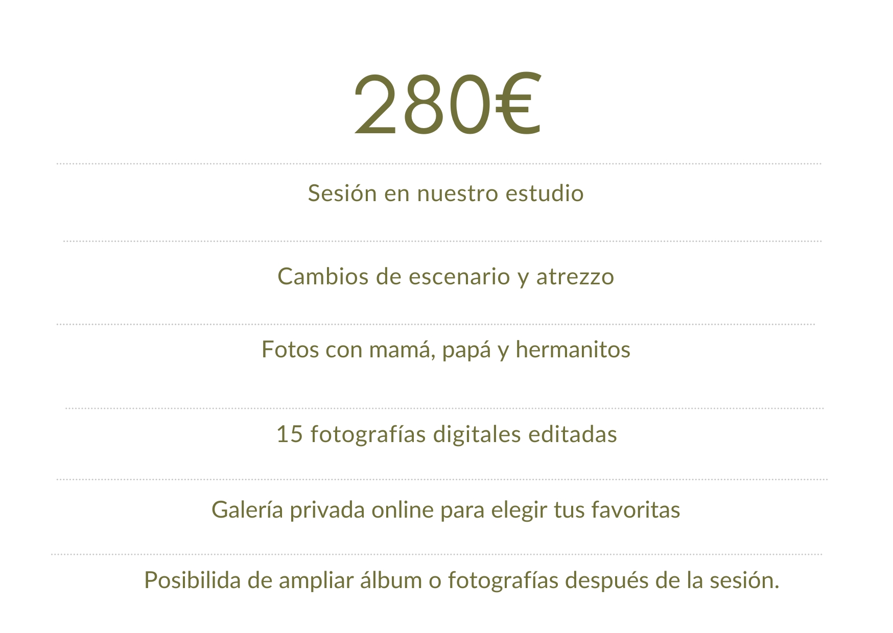 La sesión incluye fotos con mamá, papá y hermanitos si los hay. Es un recuerdo precioso para toda la familia.