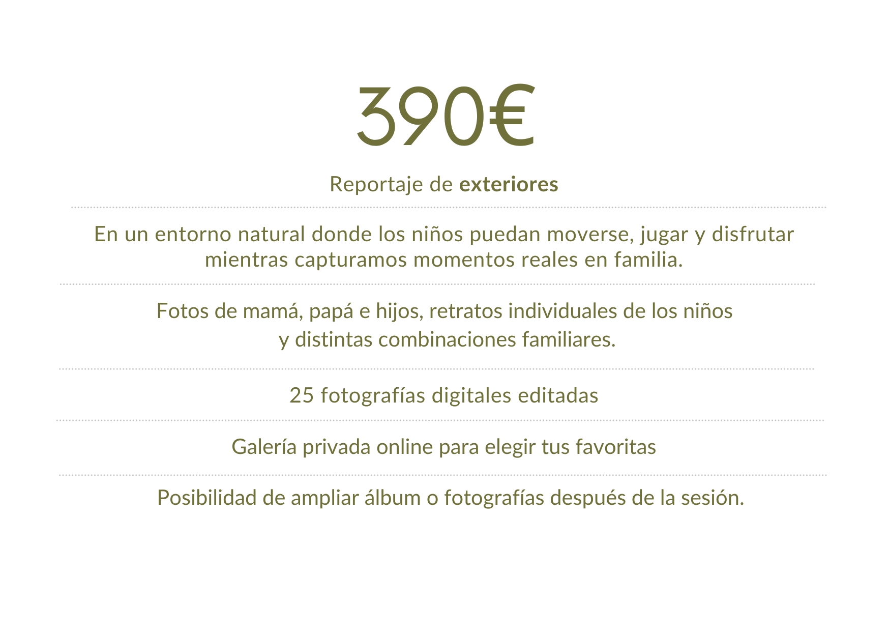 Creamos sesiones de familia pensadas para disfrutar del momento, sin poses forzadas ni prisas, donde lo importante sois vosotros y vuestra conexión. Trabajamos tanto en nuestro estudio como en exteriores, siempre buscando una luz suave, natural y un estilo atemporal que no pase de moda con los años. Os acompañamos y asesoramos en todo momento para que sepáis qué poneros, cómo prepararos y cómo disfrutar de la sesión sin preocuparos por nada. No hace falta saber posar: nosotras nos encargamos de guiaros de forma sencilla y natural. Estas sesiones están pensadas para crear recuerdos reales en familia, donde no solo los peques son protagonistas, sino también mamá, papá y vuestra historia juntos.